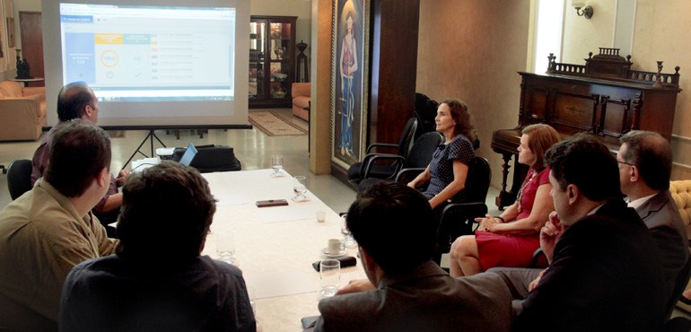 A desembargadora Francisca Adelineide Viana, gestora de metas da Estratégia Nacional de Justiça e Segurança Pública (Enasp), esteve reunida, nesta quinta-feira (25/08), no Palácio da Justiça, com a vice-governadora do Estado, Izolda Cela. O encontro teve como objetivo apresentar previamente ferramenta do projeto “Tempo de Justiça”.